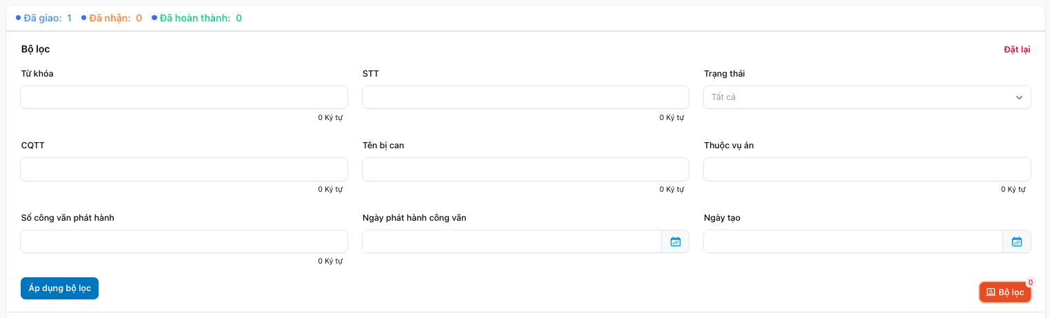 - Số lượng vụ việc ở trạng thái "Đã giao"