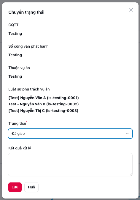 - Thay đổi trạng thái vụ việc của công ty mình (nếu có quyền)