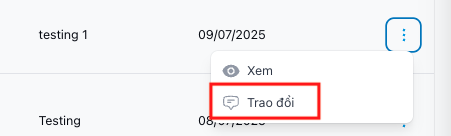 | B2 | Nhấn vào nút (...) ở cuối dòng -> Trao đổi (✏️) hoặc ở trang chi tiết | |