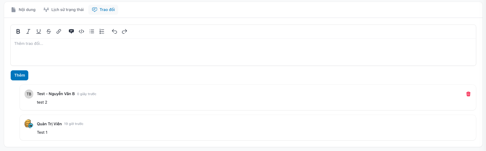 | B2 | Nhấn vào nút (...) ở cuối dòng -> Trao đổi (✏️) hoặc ở trang chi tiết | |