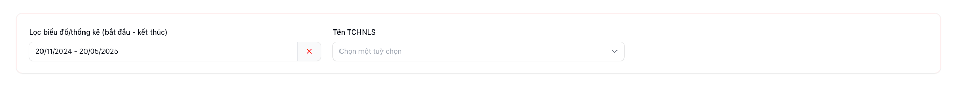 Một số trường (ví dụ dropdown "Tên TCHNLS") yêu cầu người dùng chọn để hiển thị số liệu chính xác.