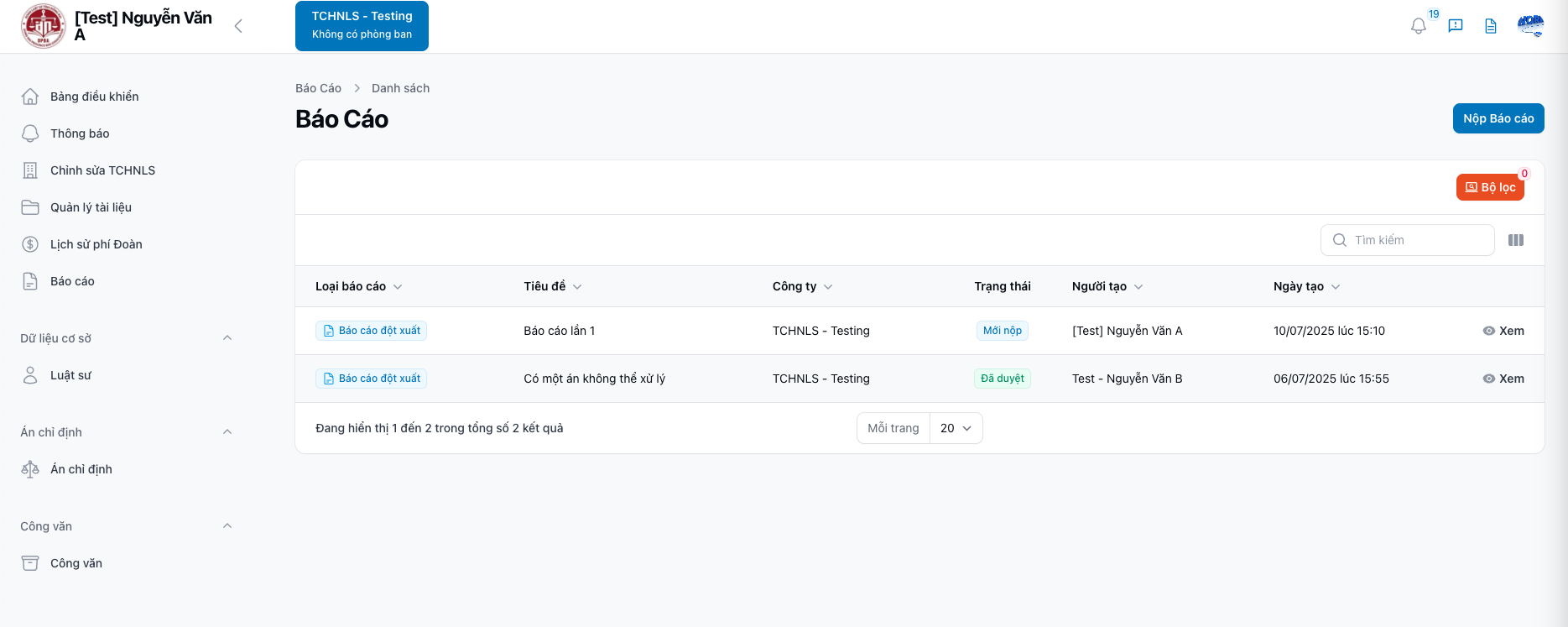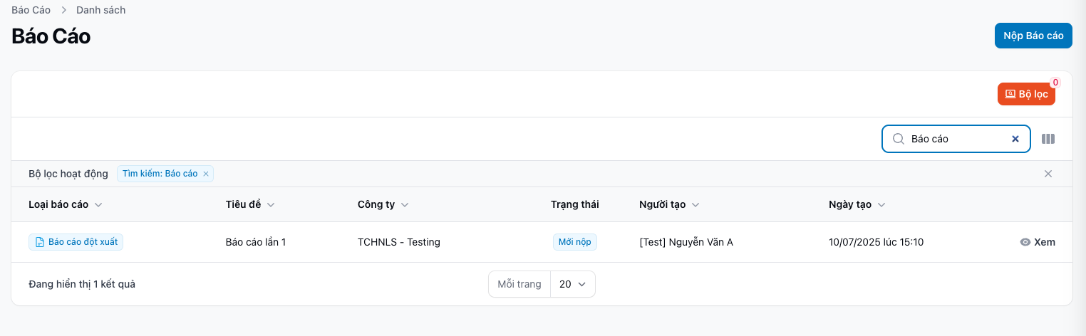 📌 Tổng quan giao diện danh sách Báo cáo
