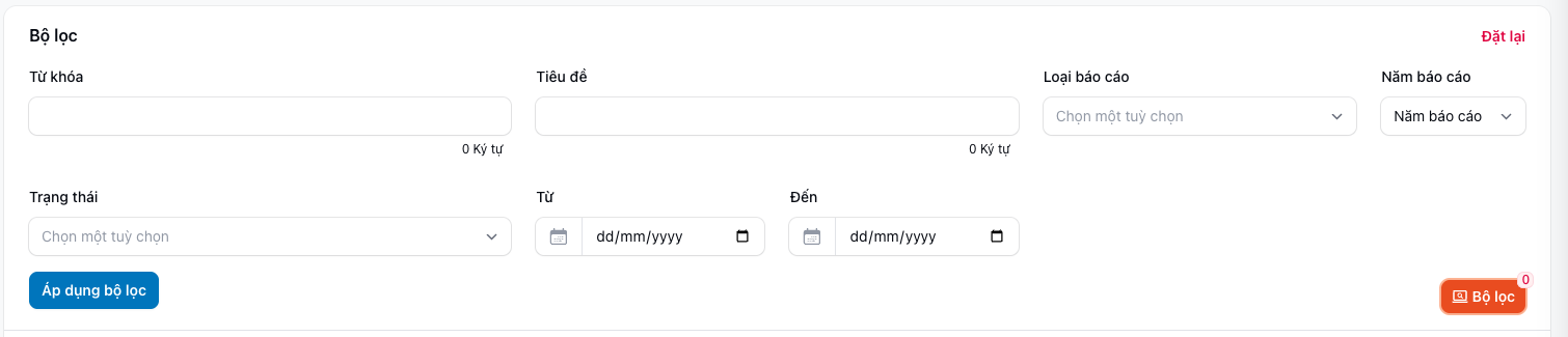 | B2 | Nhập từ khoá hoặc các thông tin cần tìm kiếm | Có thể tìm theo tiêu đề, loại báo cáo, v.v. |