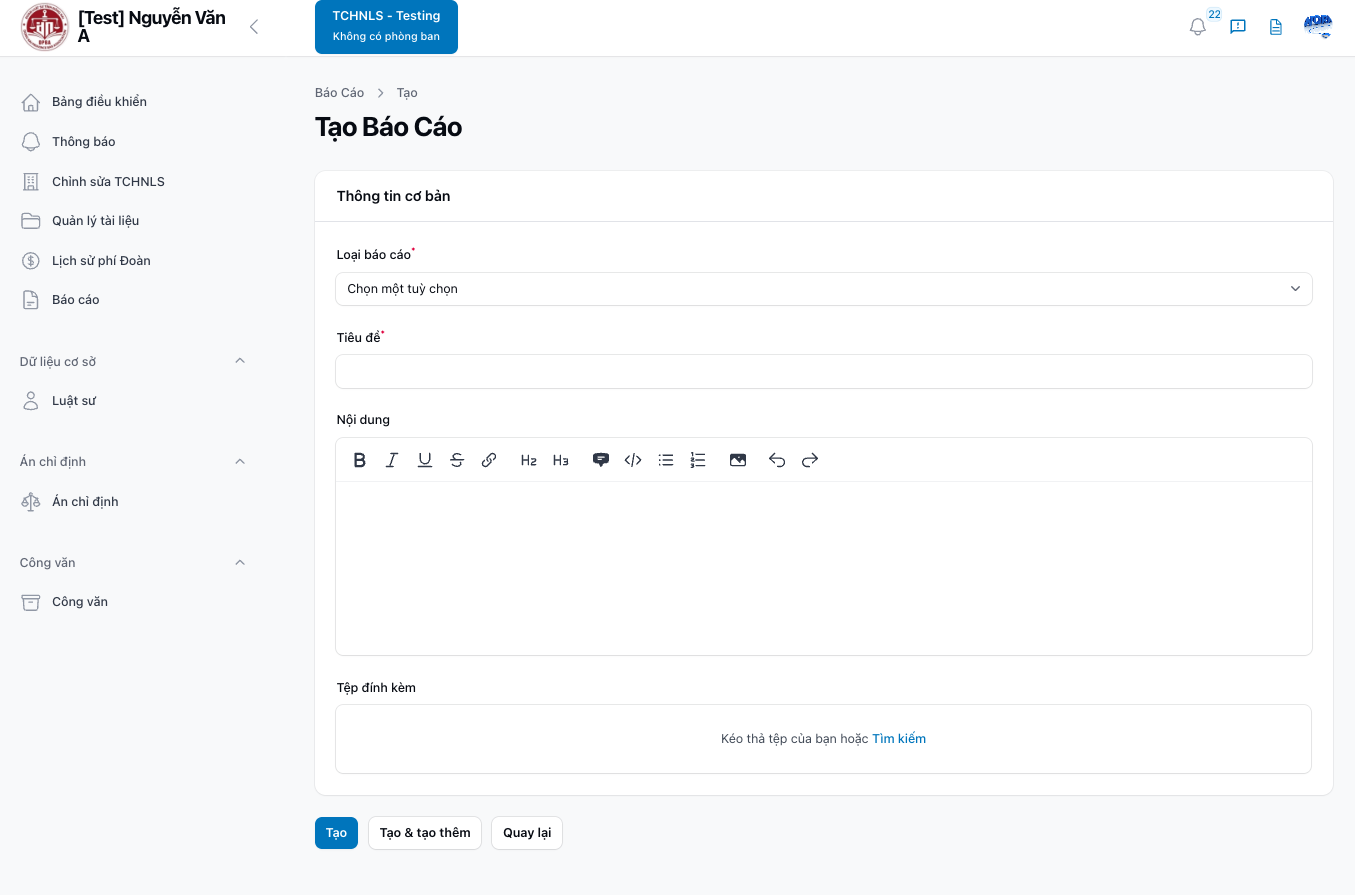 Nhập thông tin loại báo cáo, tiêu đề, nội dung, v.v. |