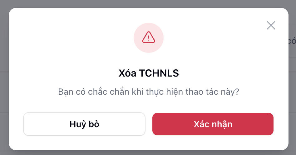 | B1 | Tìm kiếm TCHNLS cần xoá | |