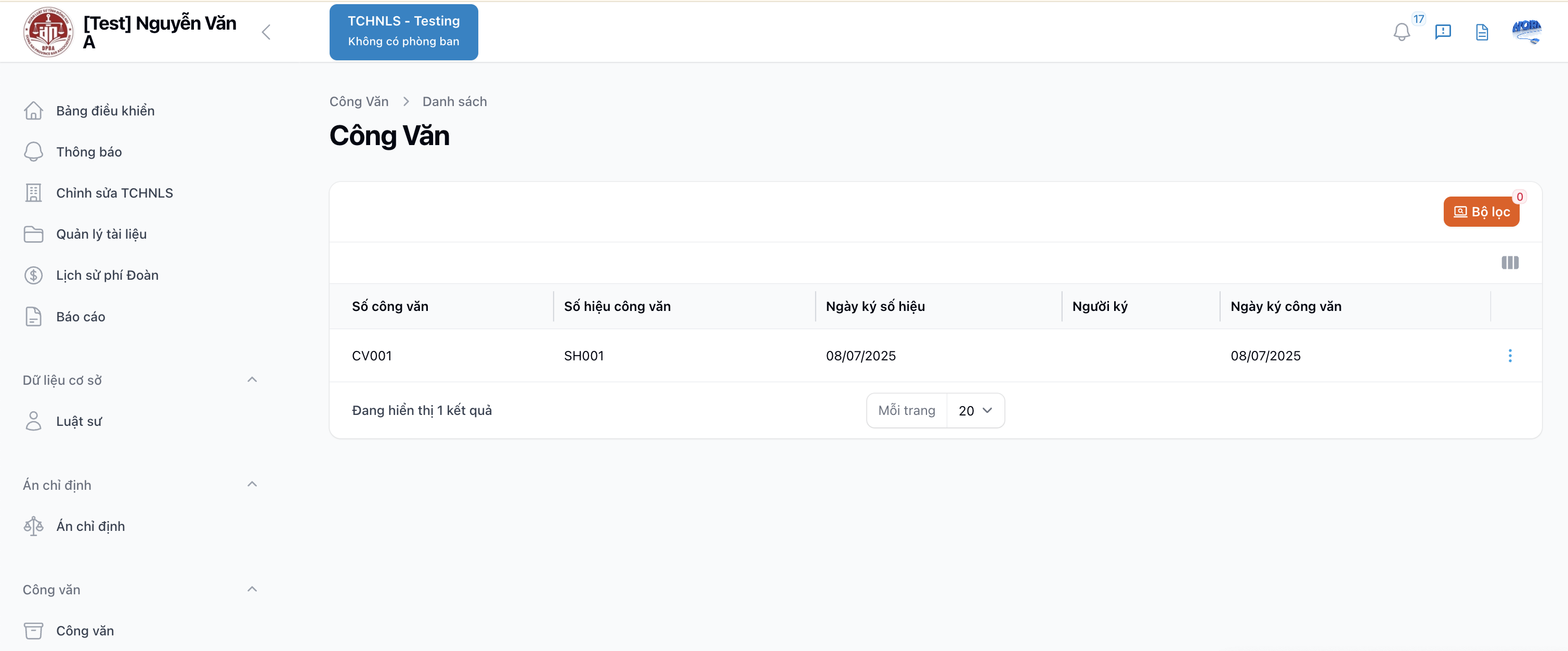 | B3 | Nhấn vào nút Áp dụng bộ lọc để lọc danh sách Công văn | |