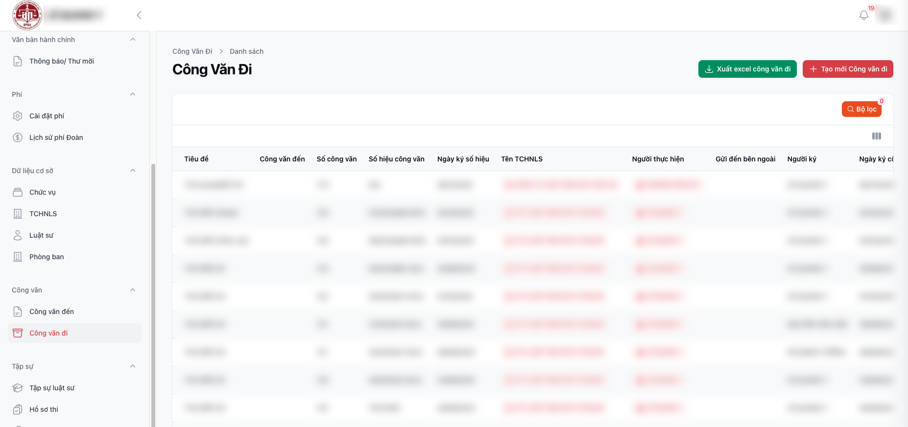 - Các công văn đi gửi cho TCHNLS/luật sư sẽ tự động gửi thông báo đến người nhận