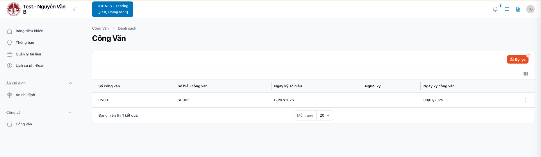 | B3 | Hệ thống hiển thị danh sách Công văn | Có thể tìm theo Công văn, Số công văn, Số hiệu công văn,... |