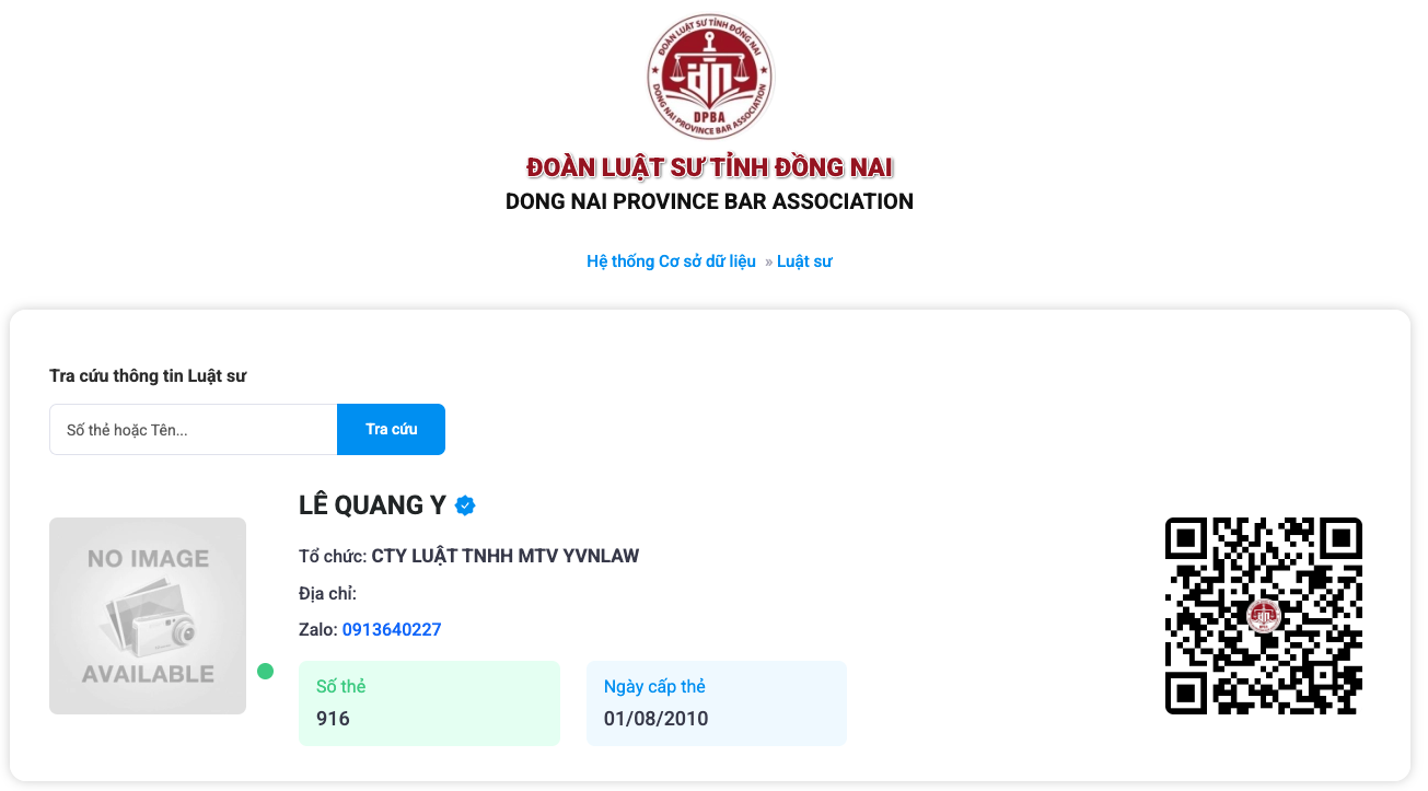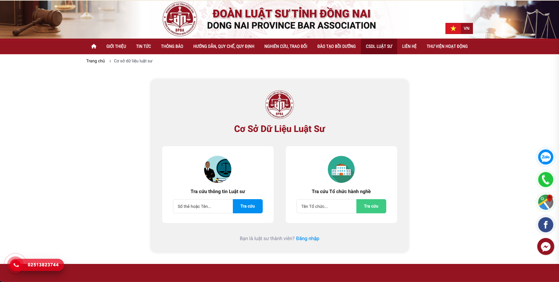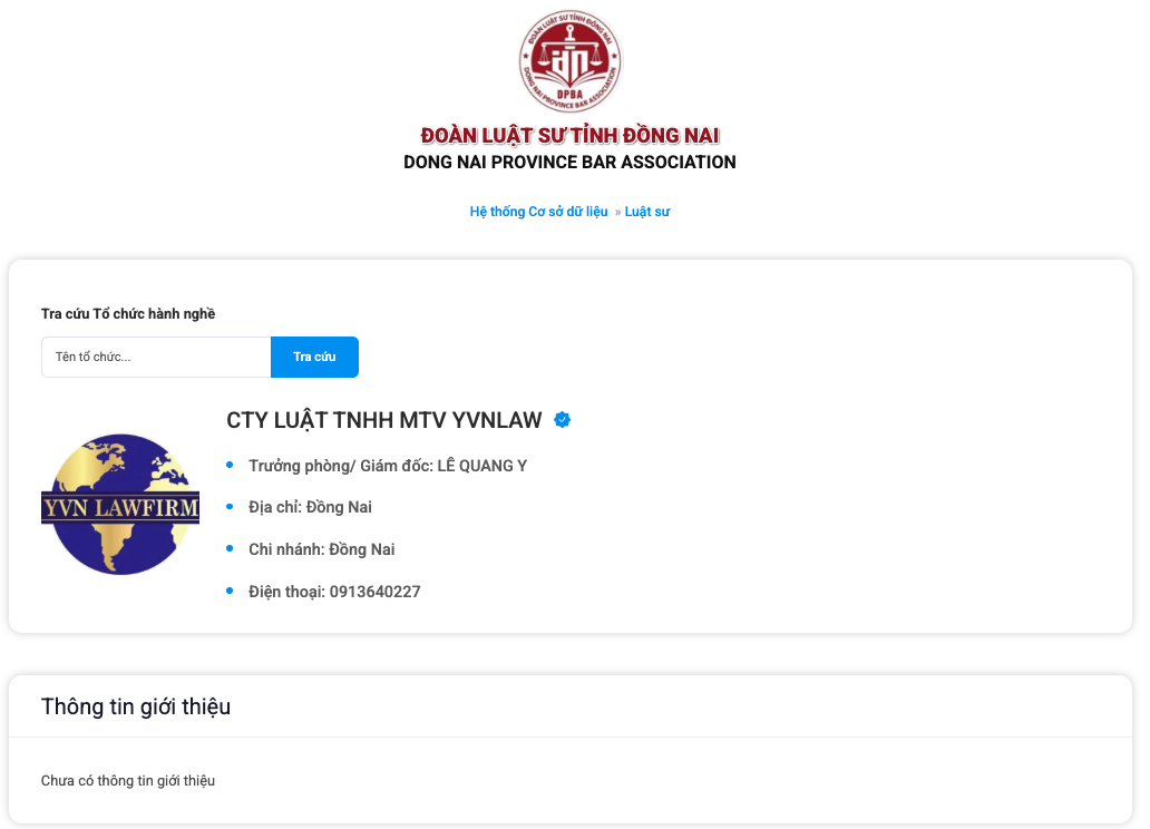Thông tin Luật sư (trang "Tra cứu thông tin Luật sư").