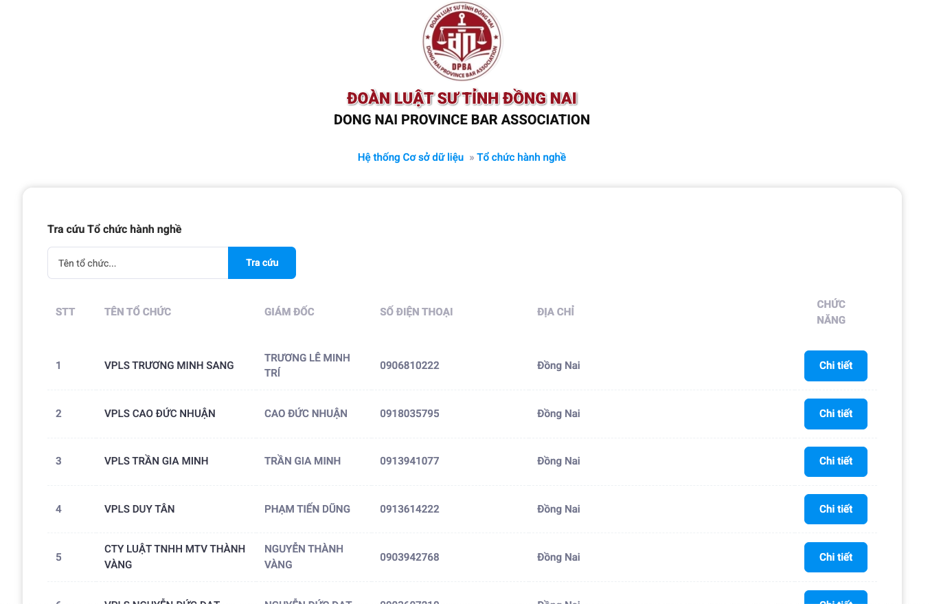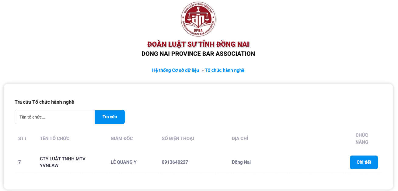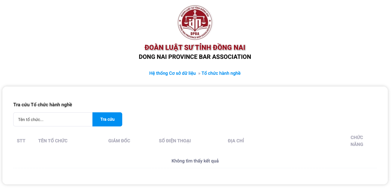 Trang sẽ hiển thị danh sách Tổ chức hành nghề tương ứng.