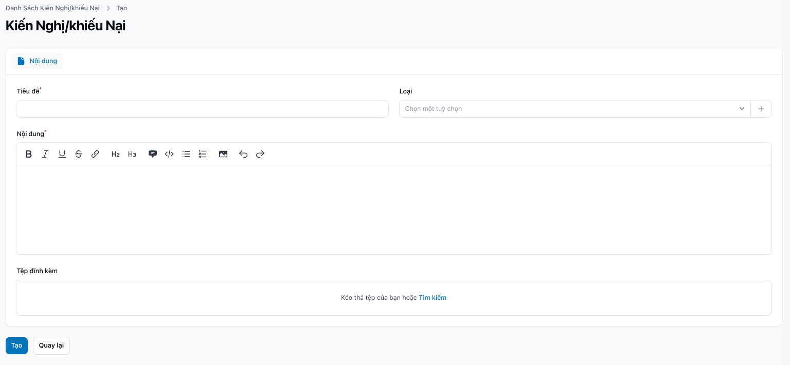 Thông báo: Khi bạn tạo kiến nghị/khiếu nại mới, tất cả Quản trị viên sẽ nhận được thông báo.