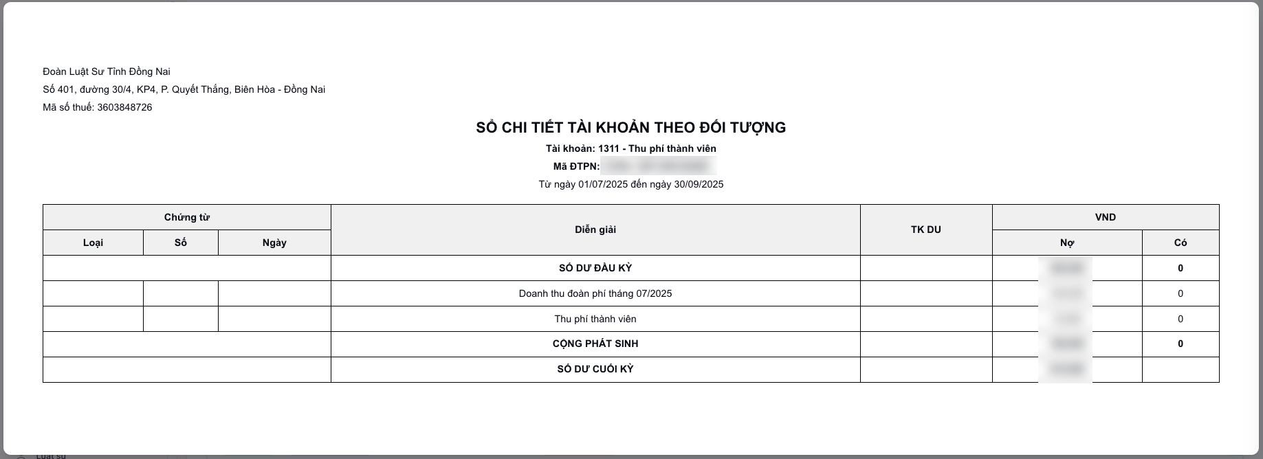 Hướng dẫn người dùng sử dụng chức năng [Phí - Lịch Sử Phí Đoàn] trong hệ thống quản lý của Đoàn Luật sư tỉnh Đồng Nai, bao gồm: