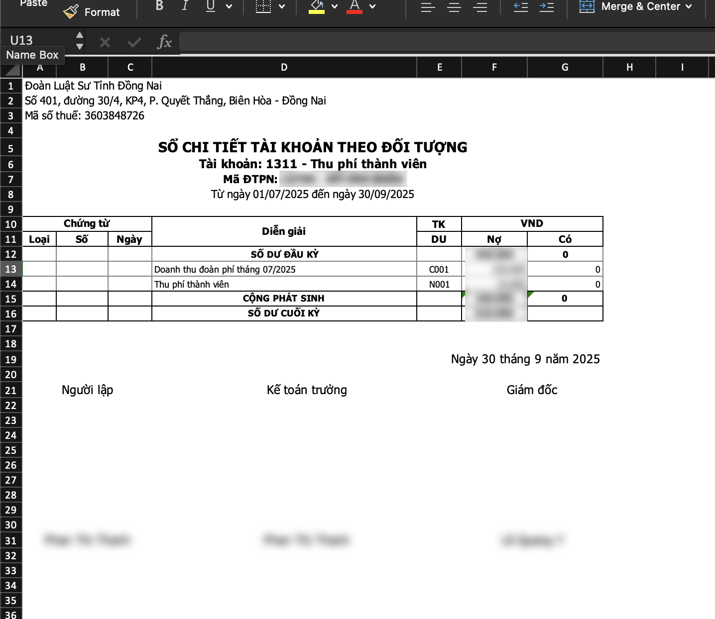 | B3 | Nhấn “Xuất phí” | Tải file excel |