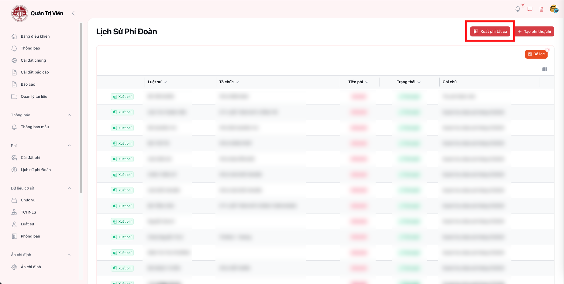 | B1 | Nhấn nút “Xuất phí tất cả” | Nằm ở góc trên bên phải danh sách |