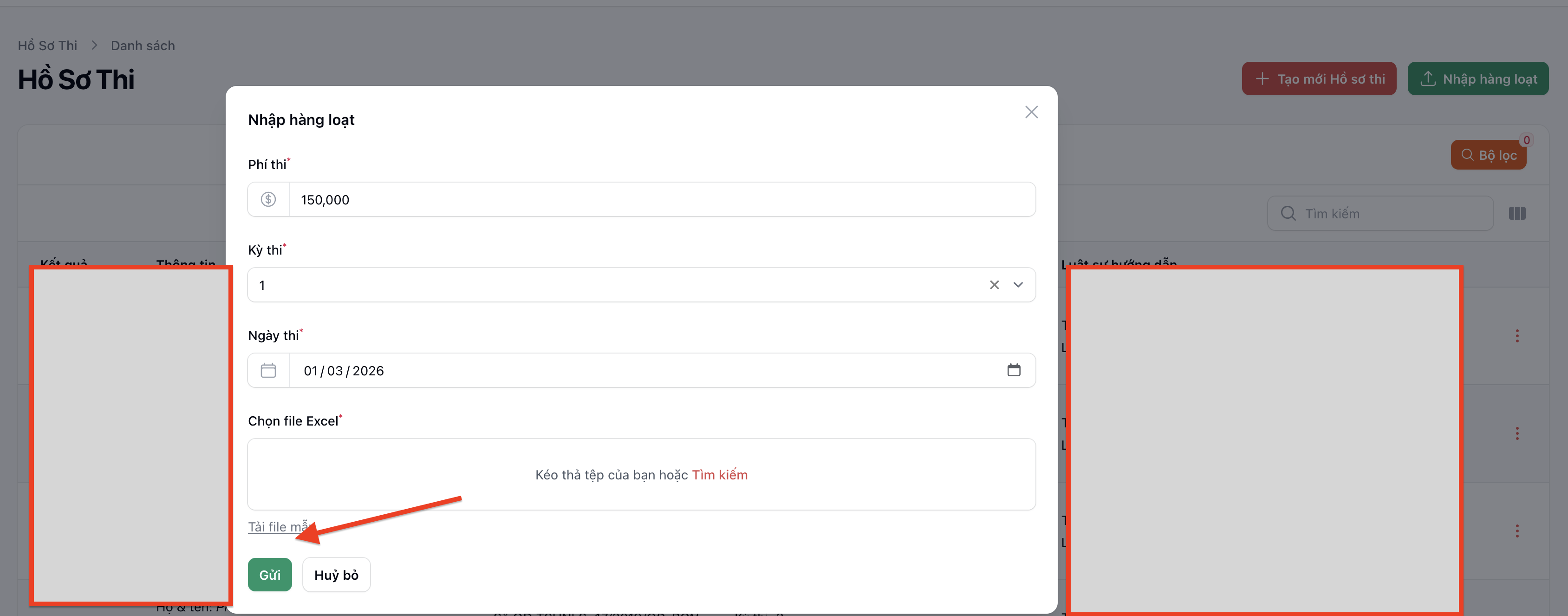 🔹 E. Nhập Hồ Sơ Thi Hàng Loạt