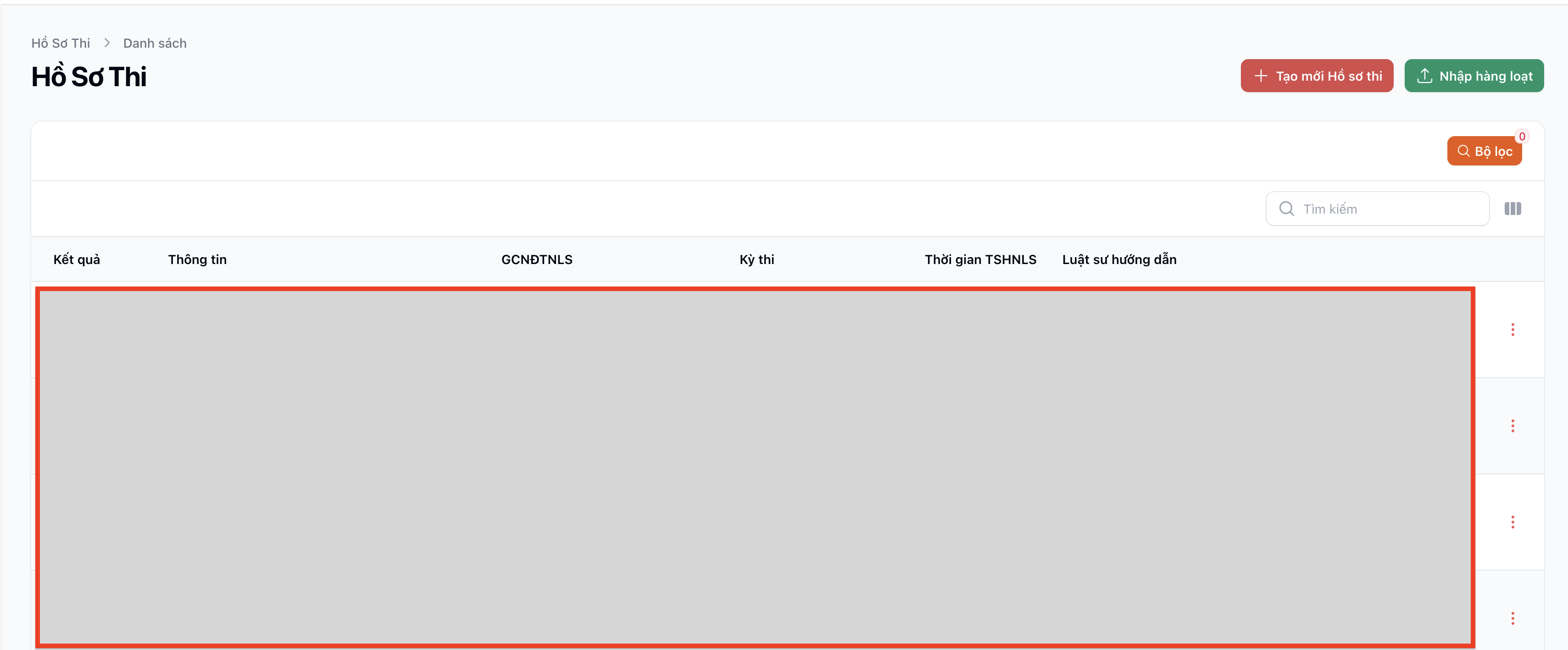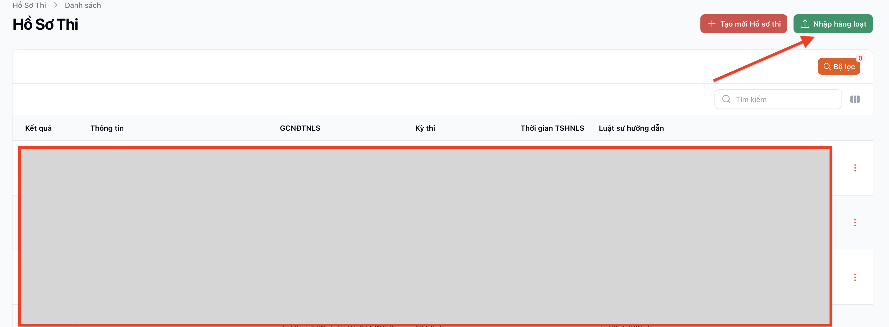 📌 Tổng quan giao diện danh sách Hồ sơ thi