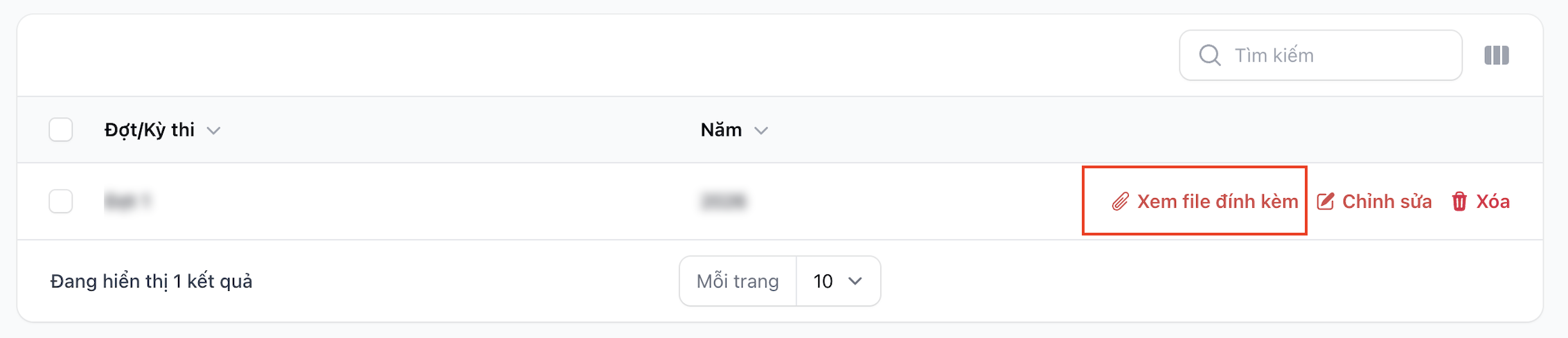 Nhấn biểu tượng "Xem file đính kèm" trên hàng đó. |