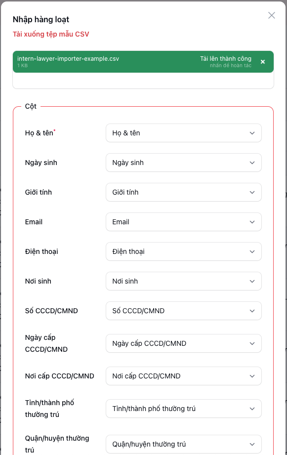 🔹 E. Nhập liệu Tập sự luật sư bằng CSV