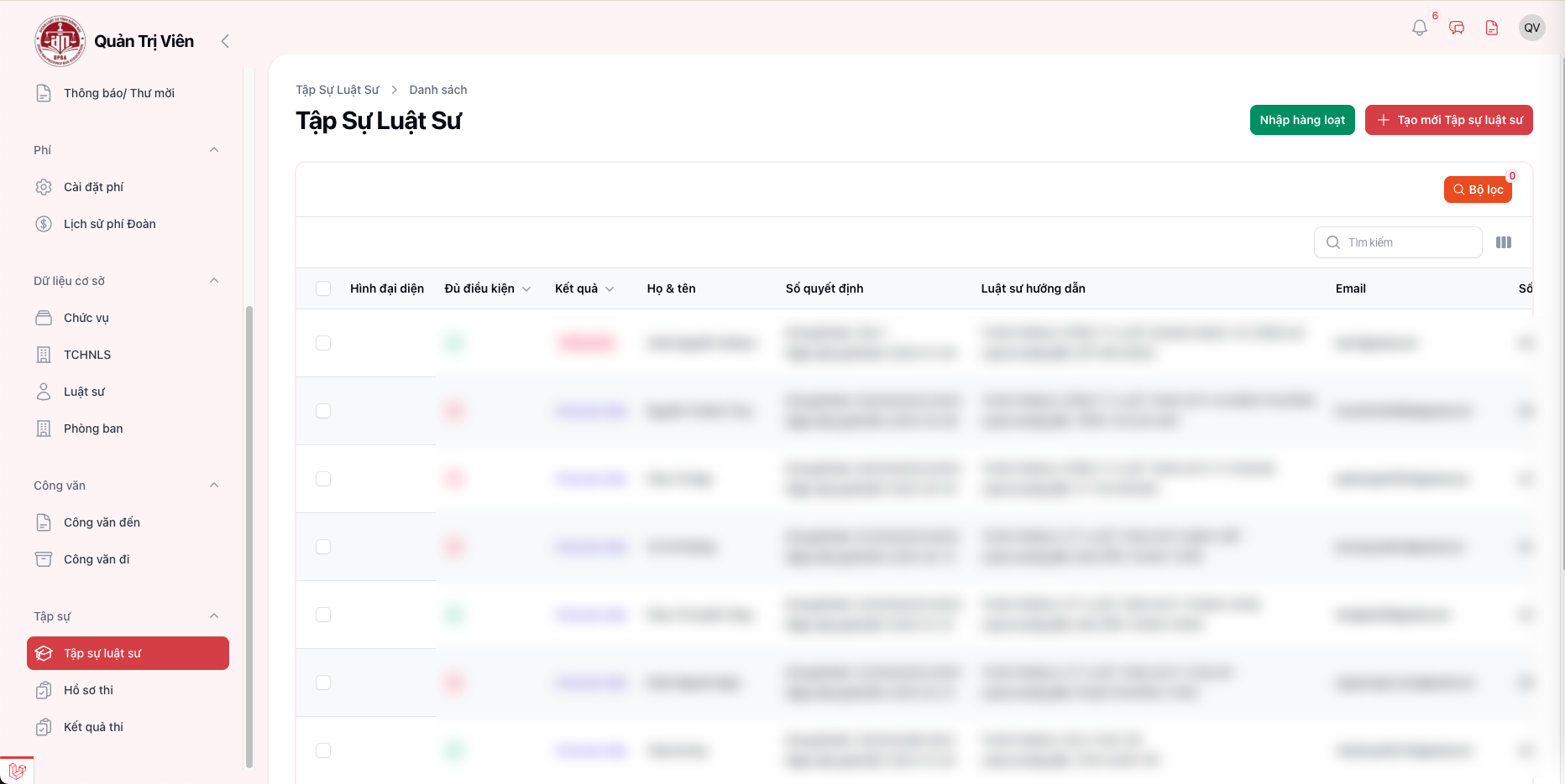 📌 Tổng quan giao diện danh sách Tập sự luật sư