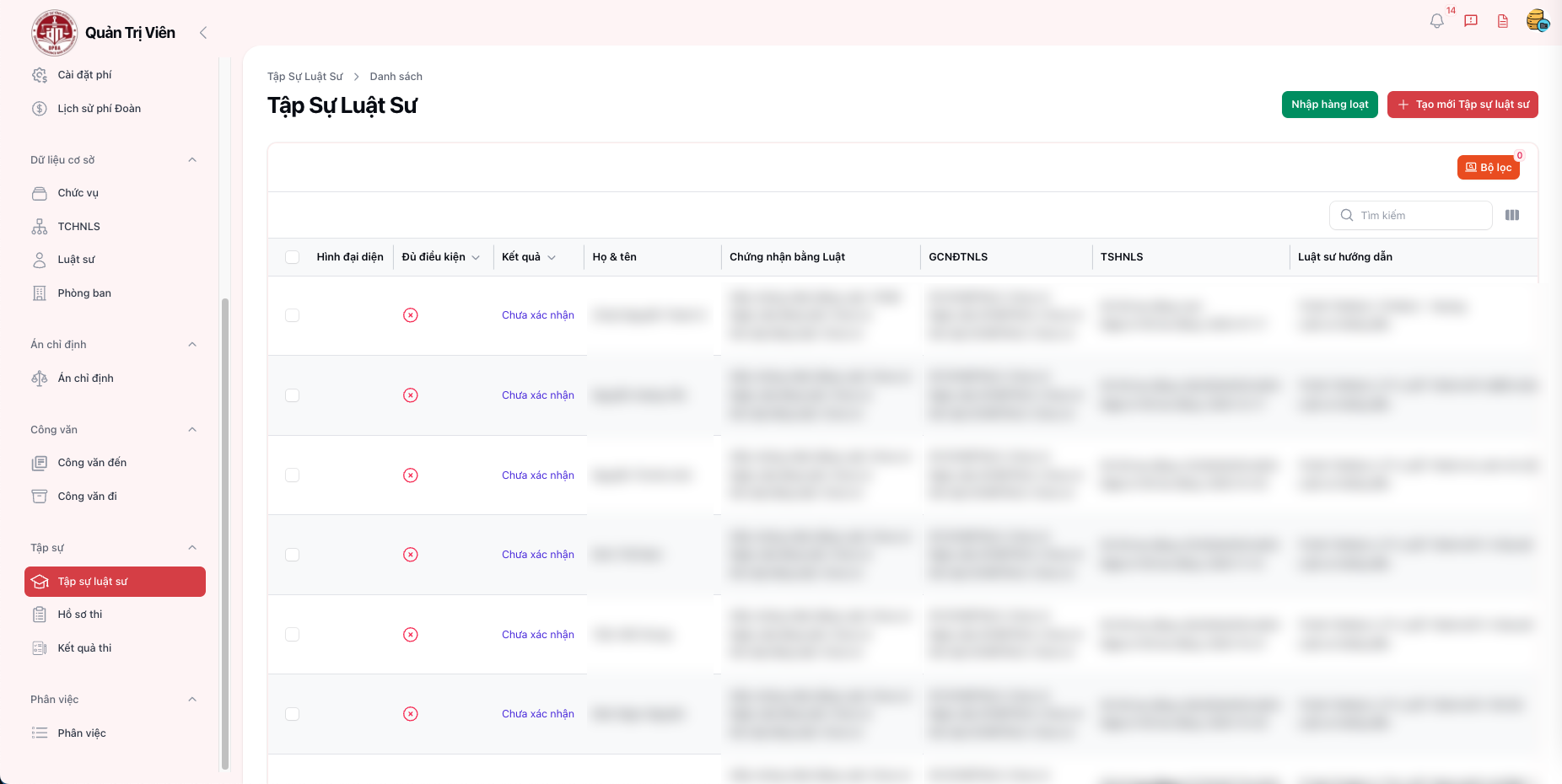 📌 Tổng quan giao diện danh sách Tập sự luật sư