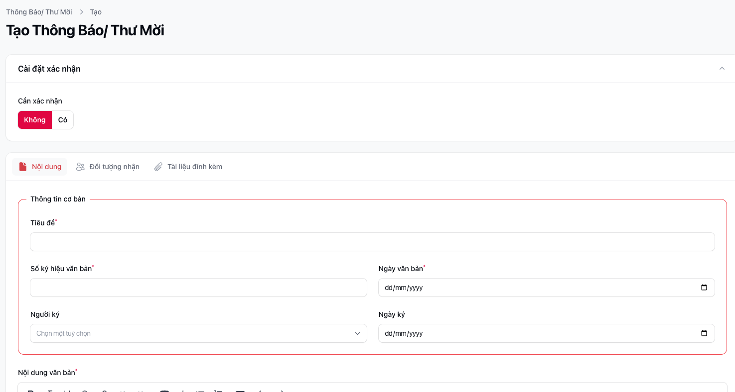- Tạo các Thông Báo/ Thư Mời hành chính mới