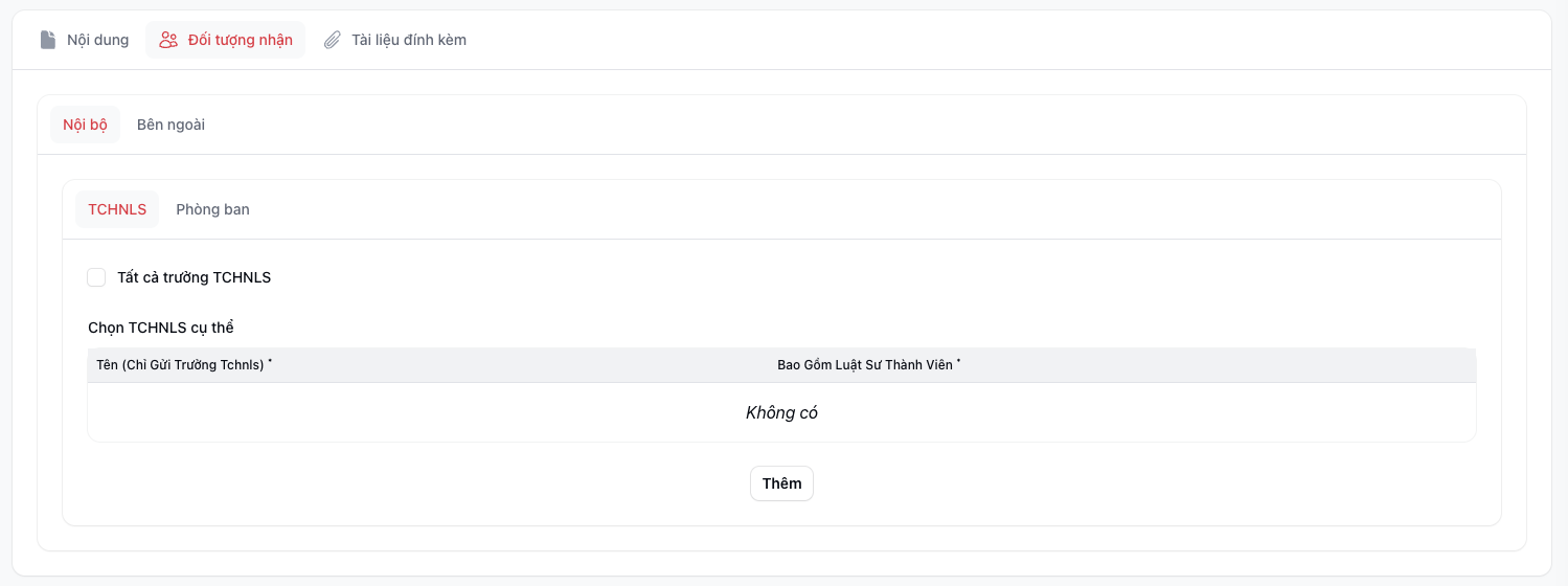 Chọn người nhận trong Tab "Đối tượng nhận":